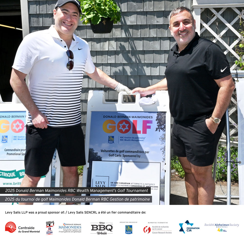 "Levy Salis SENCRL est fier de parrainer le tournoi de golf Donald Berman Maimonides 2023 et d'autres événements charitables à Montréal".